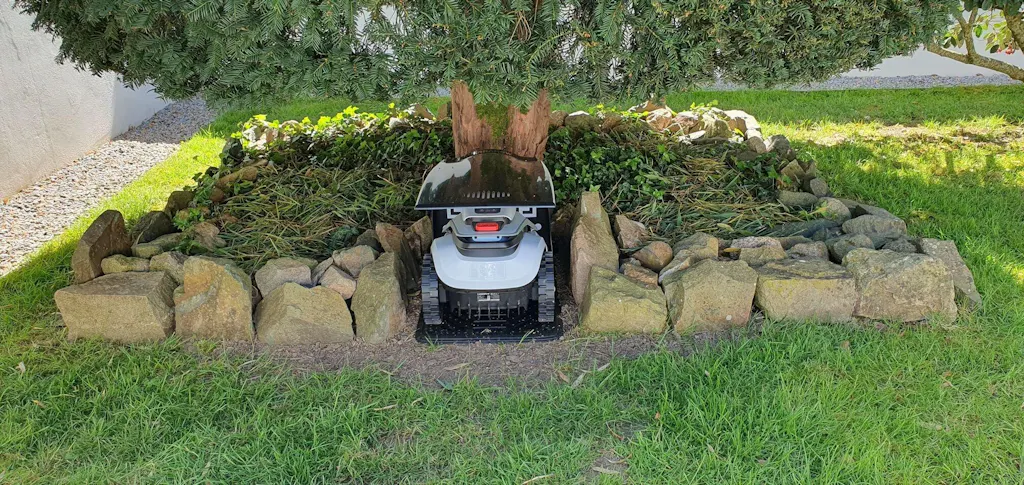 Domina jardines complejos: La complejidad no es un problema para el V1000 gracias a su capacidad de evitación de obstáculos en 3D, diseño compacto y función sin necesidad de señal.