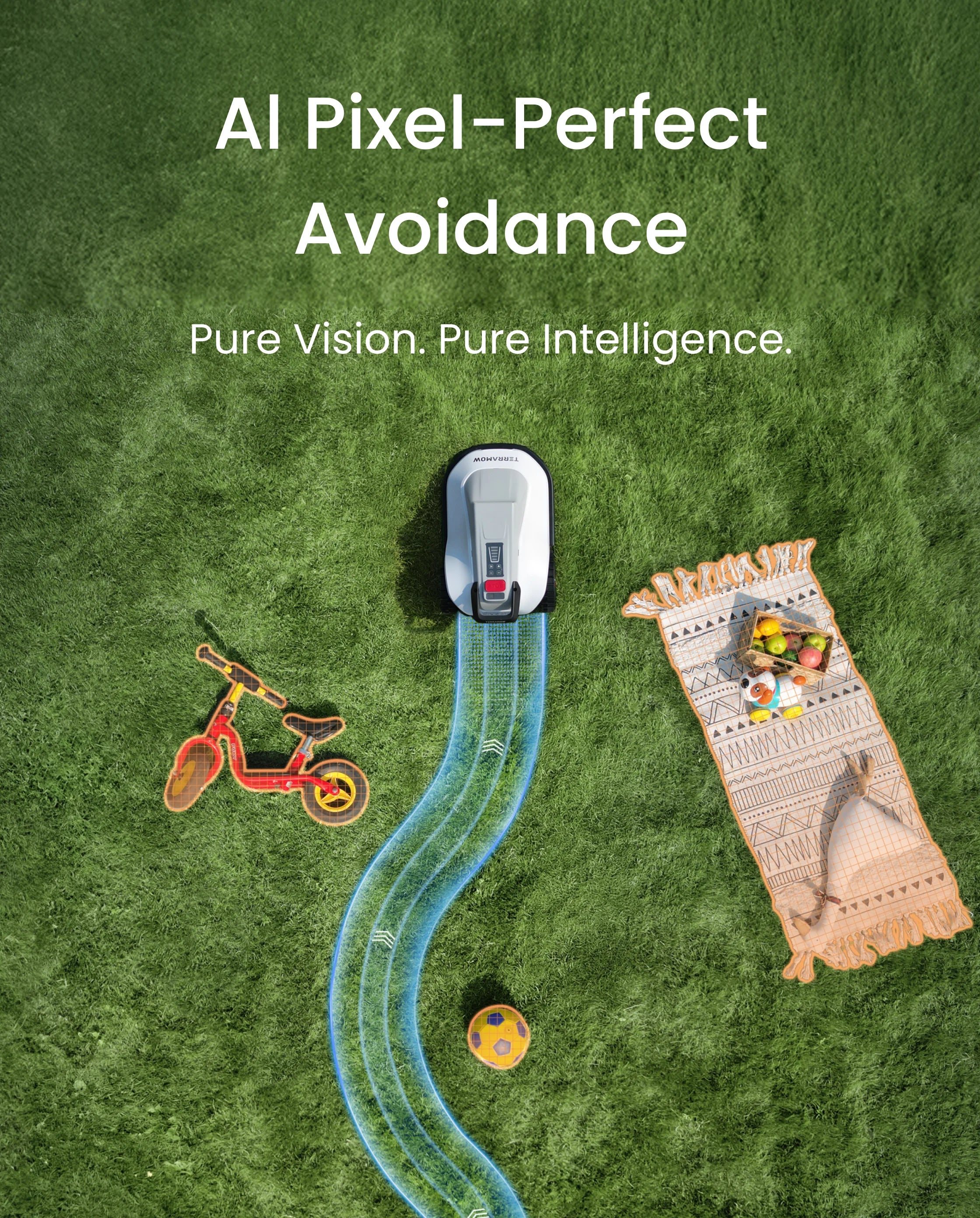 Il cuore di TerraMow, un sistema di visione innovativo che ridefinisce la cura del prato. Utilizzando telecamere automobilistiche ad alte prestazioni e tecnologie di visione AI all'avanguardia, TerraVision consente a TerraMow di navigare e interagire con il tuo prato in modi senza precedenti.